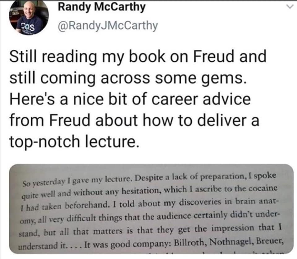 6. And to finish off for this week, here’s Freud’s little secret of giving a good lecture.